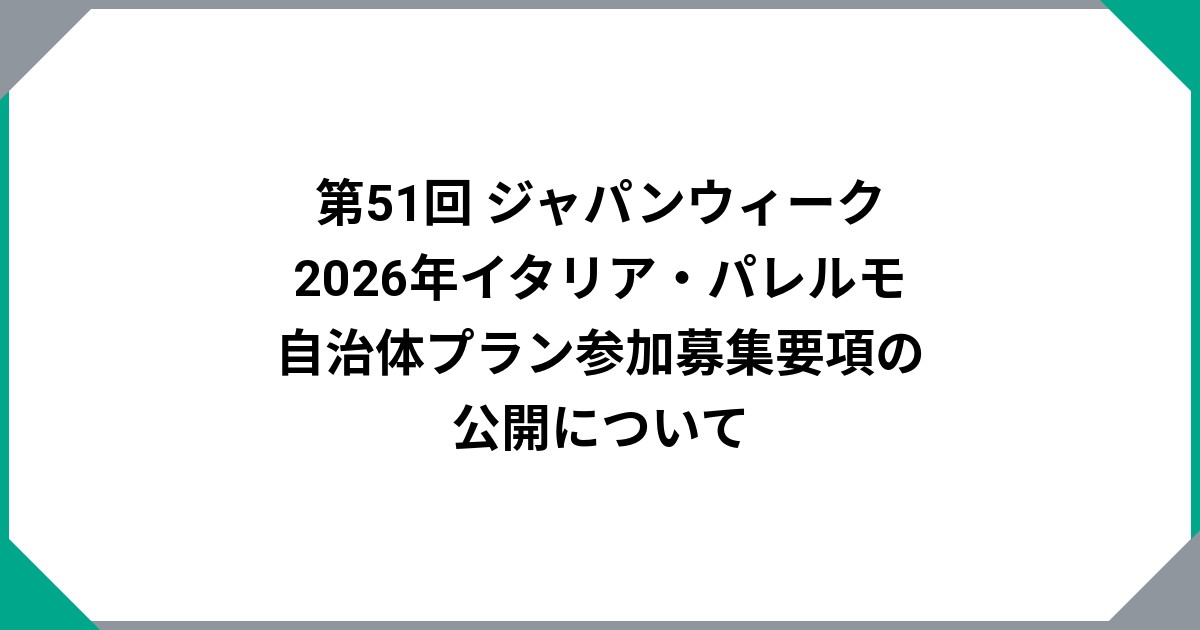 第51回 ジャパンウィーク2026年イタリア・パレルモ自治体プランの参加募集要項を公開いたしました。