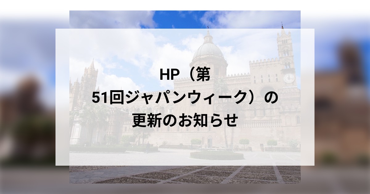 本日、HPを 第51回ジャパンウィーク2026年イタリア・パレルモ に更新いたしましたので